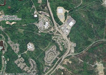This Washington Post story is really sticking in my craw. If you’ll kindly look at the photo above, you’ll see a picture from Yahoo Maps. The crosshairs are on Martin Army Hospital. North of the hospital is Columbus, GA. The buildings to the east (your right) across the highway are the PX and Commissary. The buildings southeast and southwest are family housing (where I lived) to the west is the horse stables. Now where is the firing range “across the street…200 yards away”?