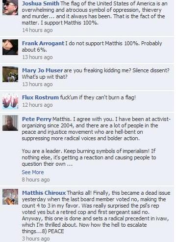 Apparently the last Board member voted yesterday and Matthis gets to burn as many flags as he wants in the name of the IVAW.