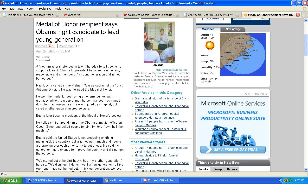 There are rumors going around that Bucha is the fellow who advised President Obama’s staff that they could skip the “Salute to Heroes Inaugural Ball” for Medal of Honor recipients. Only rumors, mind you, I don’t mean to lend credence to rumors.