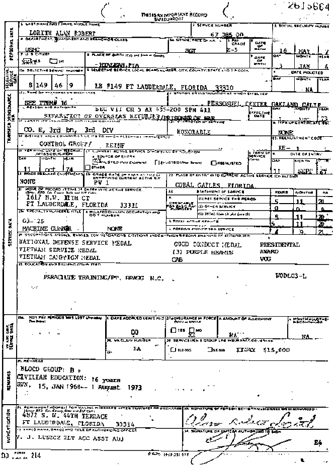 We got a tip that there’s a serious phony Marine in Raleigh by the name of Alan Robert Lorinth expressing his first amendment right to be a jerkwad. According to POW Net, he’s been confronted and reported several times for pretending to be a Marine (his actual service was in the Army as a chaplain’s assistant in Vietnam), a POW, and an awardee of three Purple Hearts.