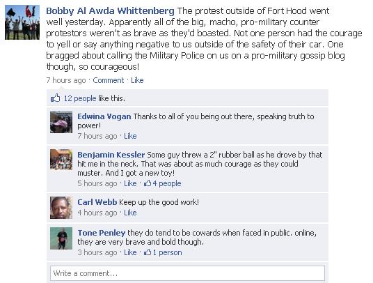 In case you were wondering how well the participants thought the protest went outside of Fort Hood last week, Bobby Whittenberg, the head pirate of the new revolution, says it went well;