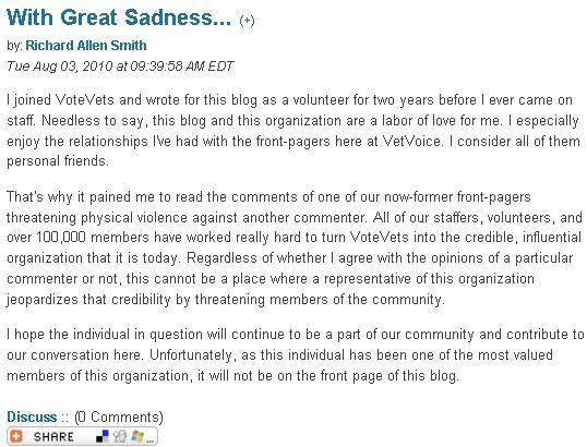 TSO–doesn’t even look like they shitcanned him, just relegated him to a minor role. So I guess threatening violence isn’t THAT bad, provided it’s done against people who disagree with ya. Sheesh. And to think, were I to use those kinds of statements against one of MY co-workers, I’d be kicking my lunchbox down I-95. Whatever.