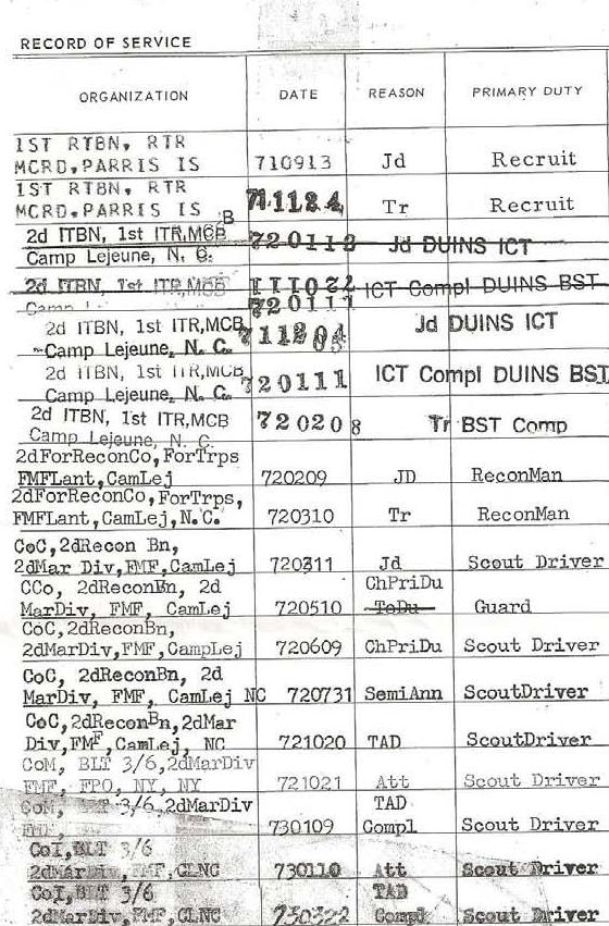It looks like he was in 2nd Force Recon for 1 month and 2nd Recon Bn for 7 months and it looks like he did complete the Amphibious Recon Course.