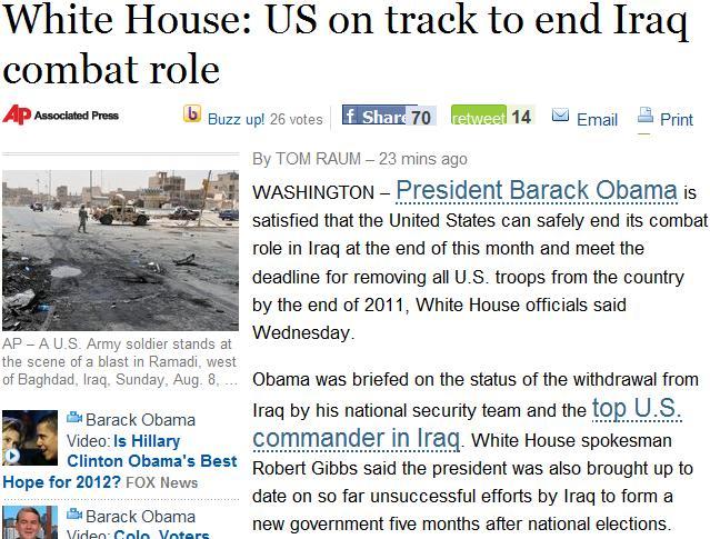 Associated Press released this story a few minutes ago announcing that the White House is certifying the timetable withdrawal of combat troops from Iraq;