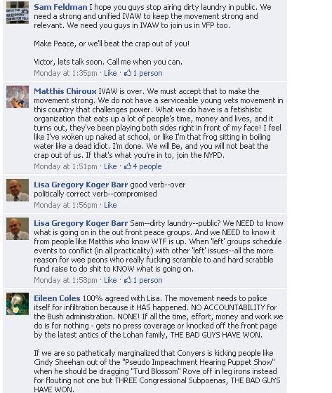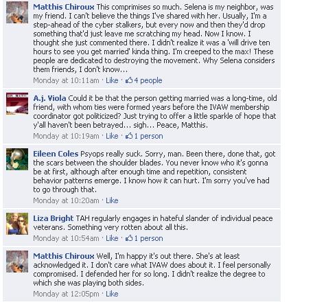 UPDATE: I just got confirmation from Jose Vasquez, the executive director of IVAW, that Matthis has finally resigned from IVAW. Jose seemed to be quite distraught. I think there were tear stains on the email.