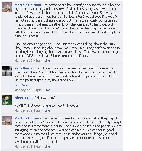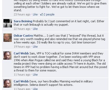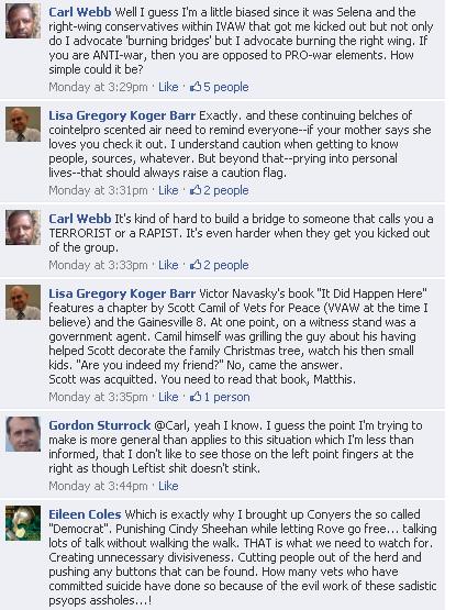 As you can see, a lot of old friends and some new ones are in the mix. I’m glad to see that poor carl Webb is still using his blood-thirsty victim status to get attaboys from the crowd and they’re still willing to pat the little cretin on his back. Keep in mind that our internet ninjas tell me that Matthis has de-friended many of the people who defended Army Sergeant and deleted some of the comments in this discussion.