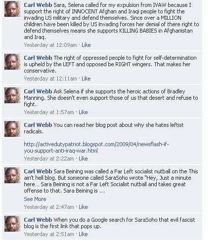 Just read back through his FB rantings. ‘fetishistic’ ? Really? That must have been some sort of Freudian slip. How is IVAW fetishistic? Do they dress up in furry costumes and hump each other?