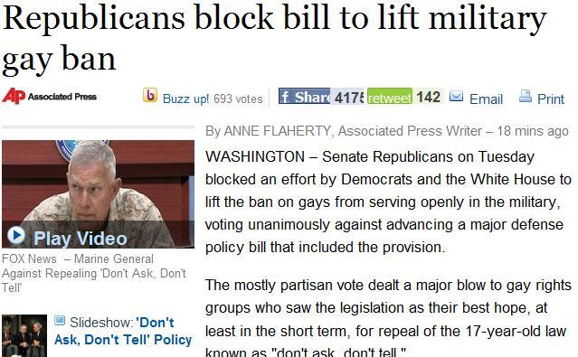 I’m gonna stay away from the DADT part of this abortion of a bill. I am pissed that the media is focusing on this and not on the HUGE part that was the DREAM act that they tried to slip through.