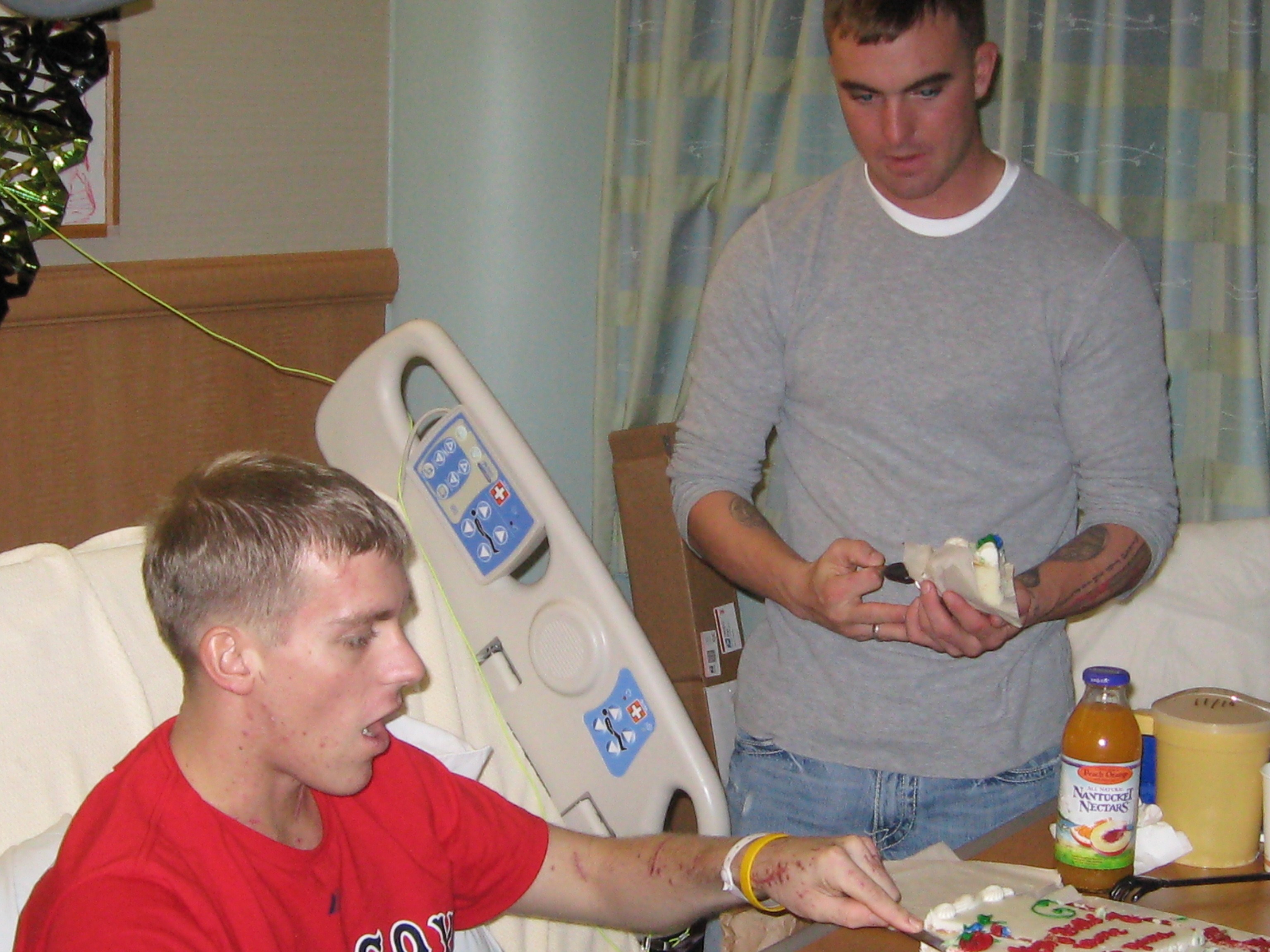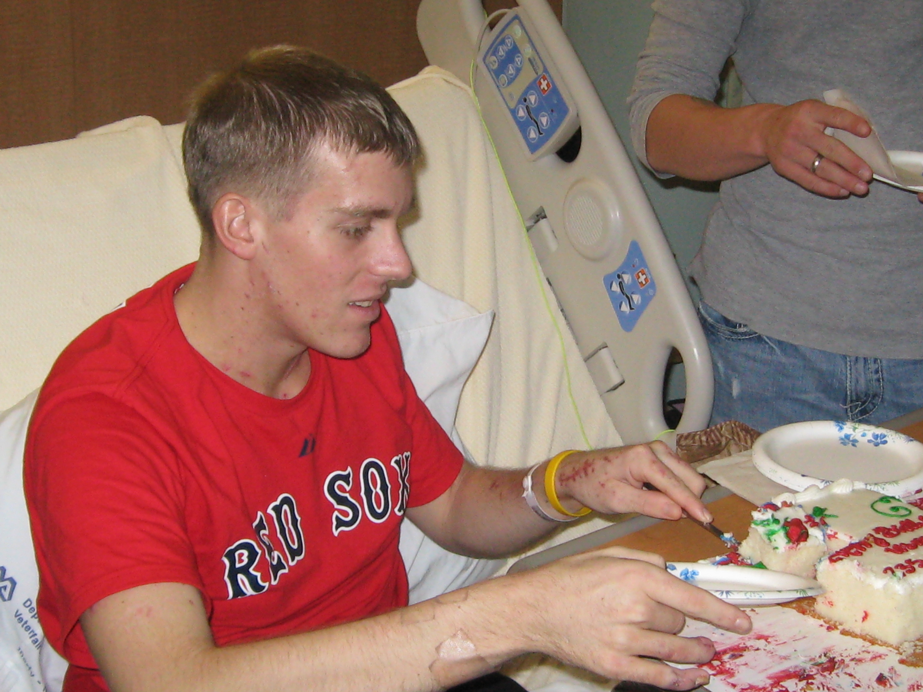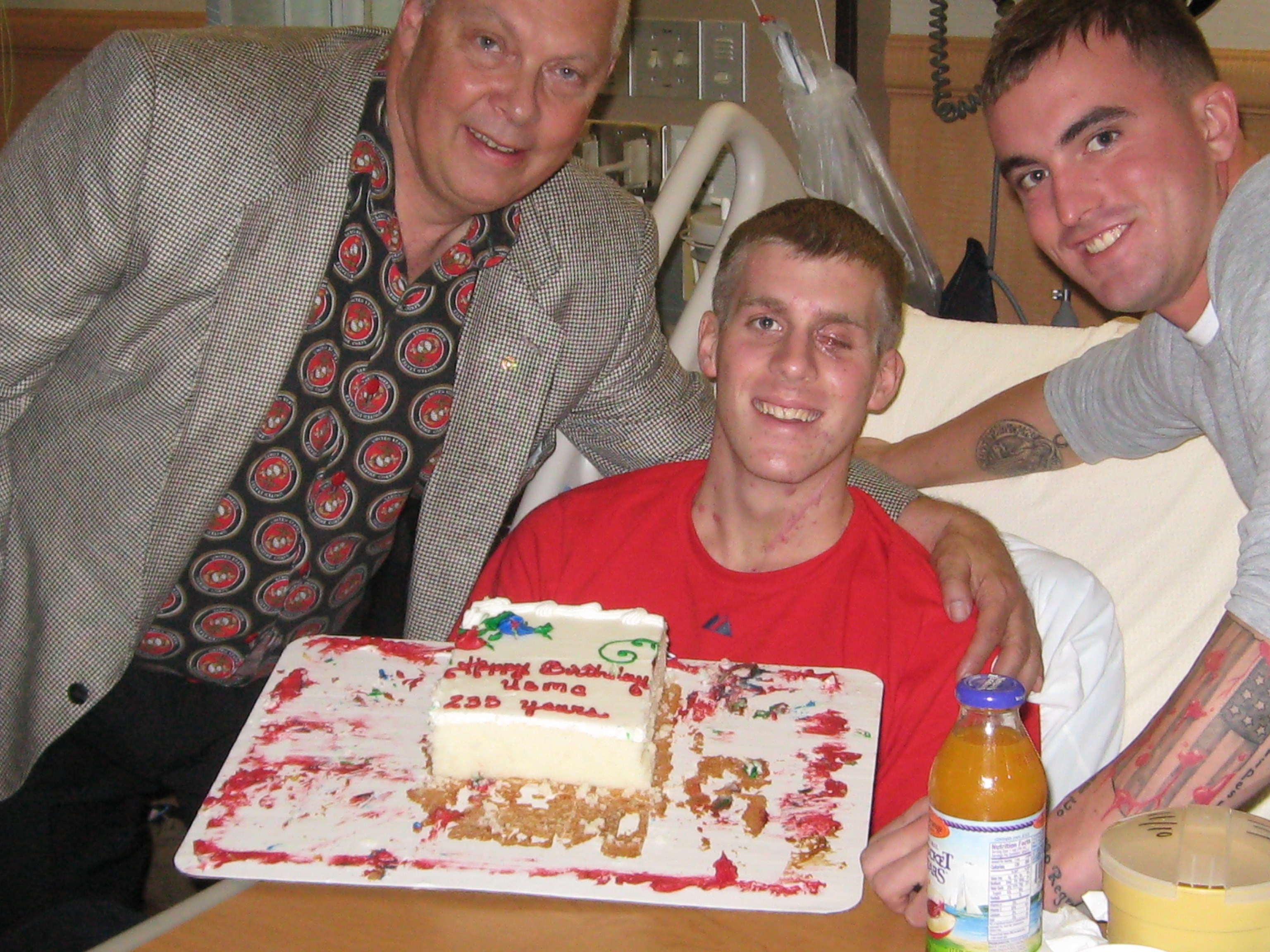 Old Trooper sends the pictures he took when he visited a wounded Marine on the Marines’ Birthday yesterday. I’ll bet that cake tasted mighty good;