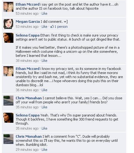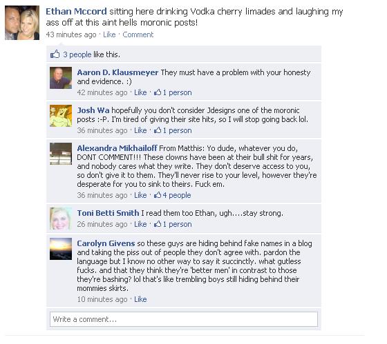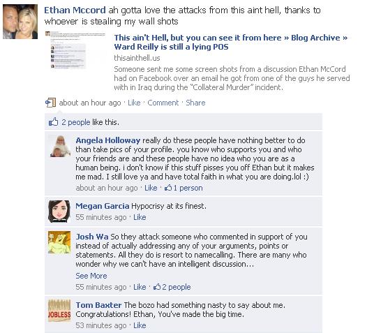 Oh, noes, someone actually reads TAH and caught us reading Ethan McCord’s Facebook screen shots.
