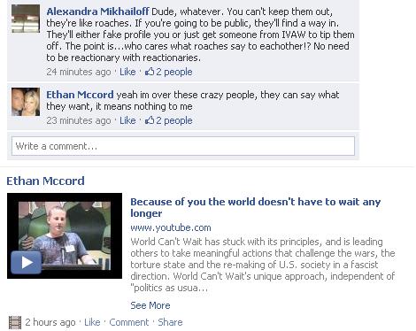 It’s kind of hypocritical of McCord to reprint a personal email from a friend and then complain because I published his Facebook conversation, isn’t it? Ooops, I almost forgot to mention IVAW so this post shows up in their paranoia feeds.