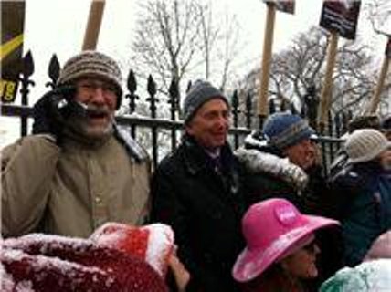 Next time protestors lock/handcuff themselves to a fence on a cold day, take away the keys and put a hacksaw blade about 6 ft away, beside some buckets of water. Set up a boombox with some Toby Keith and Ted Nugent blasting on the other side of the street, then walk away.