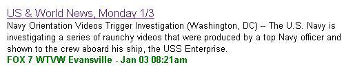 I think it is time for an investigation into who were the sailors who (1) leaked these videos to the press and (2) sent them to the US Navy IG. As far as we know, Captain Honors has been a highly successful military leader for the past 3-4 years. The only thing that has changed during that time has been repeal of DADT and the decision to put women on NAVY deployments.