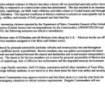 ”Much of the country’s narcotics-related violence has occurred in the northern border region. For example, since 2006, three times as many people have been murdered in Ciudad Juarez, in the state of Chihuahua, across from El Paso, Texas, than in any other city in Mexico. More than half of all Americans killed in Mexico in FY 2009 whose deaths were reported to the U.S. Embassy were killed in the border cities of Ciudad Juarez and Tijuana.