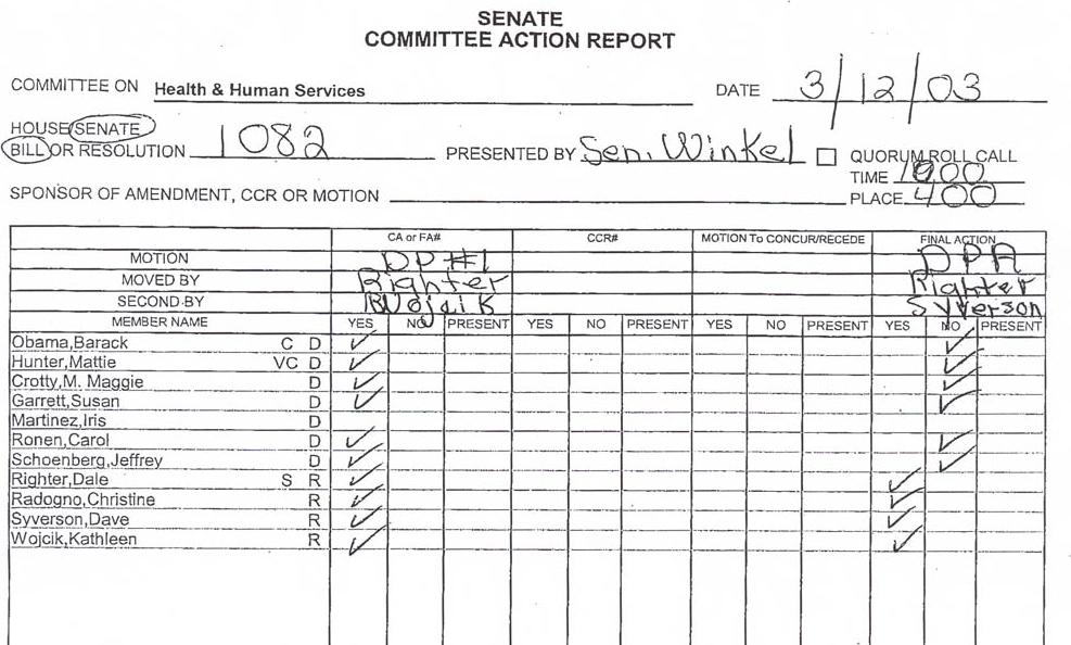 Recently published documents by Jill Stanek prove that in 2003, Barack Obama, as chairman of an IL state Senate committee, voted down a bill to protect live-born survivors of abortion: