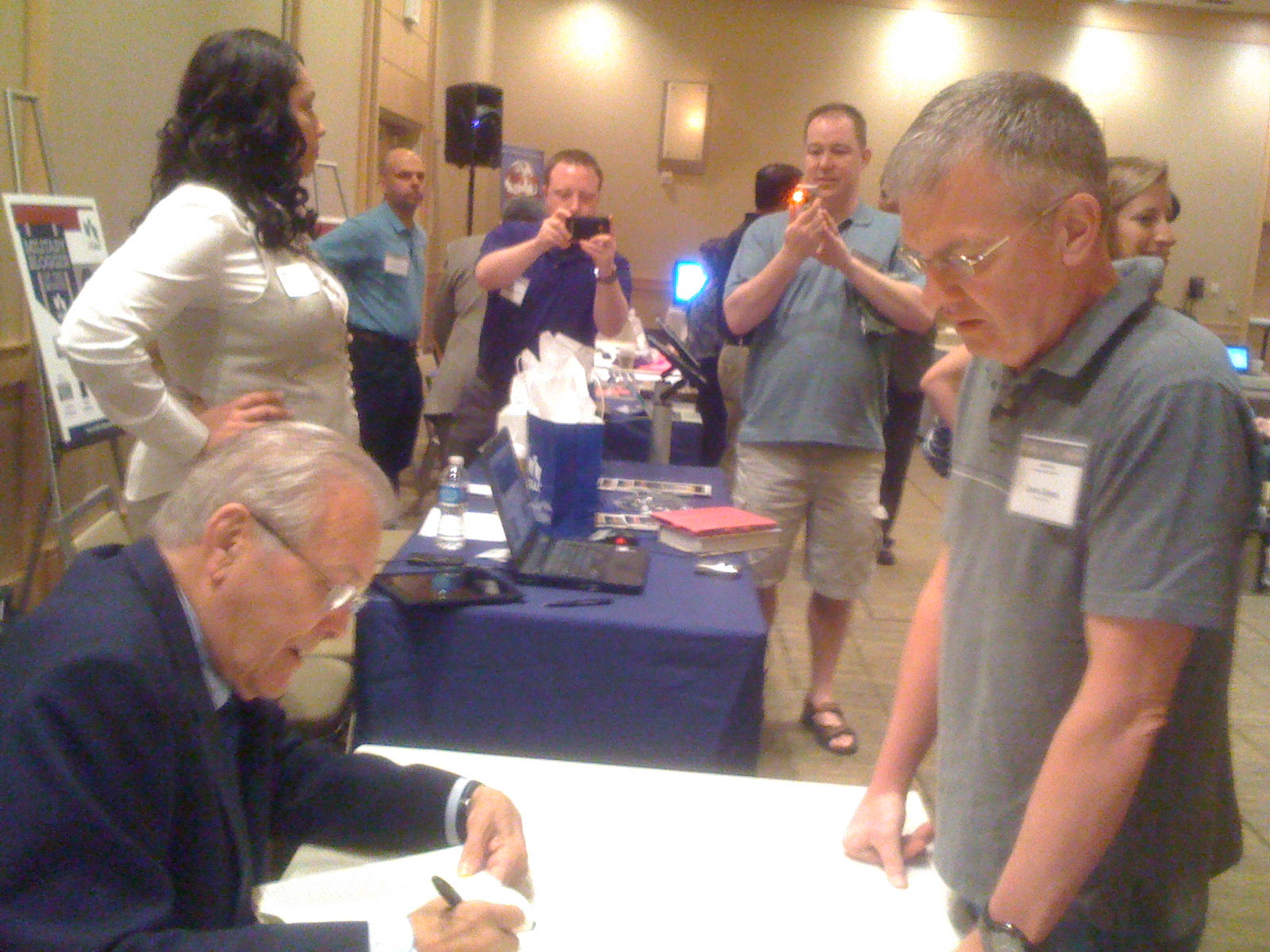 Anyway, Andi sent me this photo this morning of me getting my book signed (the real reason Rumsfeld was there). I spent my few moments with him insuring that he spelled my name correctly. I told him that Casper Weinberger spelled it right, so he should, too (I have a fairly large collection of signed first edition books, including Reagan’s SecDef Casper Weinberger’s memoirs). Rumsfeld has a place in our family’s history since he was Secretary of Defense in my early career and then again in my son’s career nearly thirty years later.