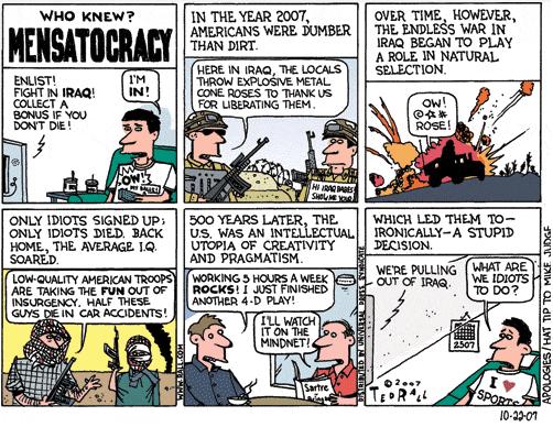 Anyway, you get the general idea: Ted Rall hates America, hates veterans, hates service members, REALLY hates the government, and thinks all of us who served are idiots. Fair enough, I hate him back. (So there, in your face Ted Rall!)