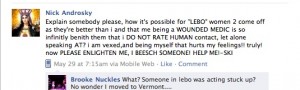 Scott sends these screenshots of his Facebook Wall before he tore it down;