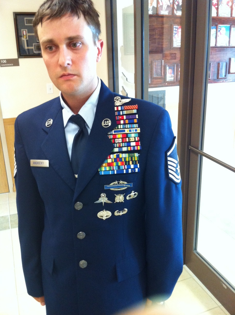 However, you know how you were advised to think and or research before you type? First off, what is an Air Combat Medal? I see him wearing an Air Force Combat Action medal above his BSM. Pretty sure that’s what you meant. Secondly, us Airmen do in fact wear unit awards amongst our personal awards, including “bordered” ones. Lastly, and most importantly, I serve in a battlefield Airman AFSC, which simply means that I support Army Combat Arms troops, to include Infantry units. In such a unit, it is very possible to find an Airman such as you described – a later twenties (maybe not E-7, but E-6 with a line for E-7? Definitely.) who is Air Assault, Airborne, Infantry (yes, Airmen certain Airmen are authorized go through Army Infantry training) qualified, and, obviously, a combat vet. Even more so if he is prior- Army.