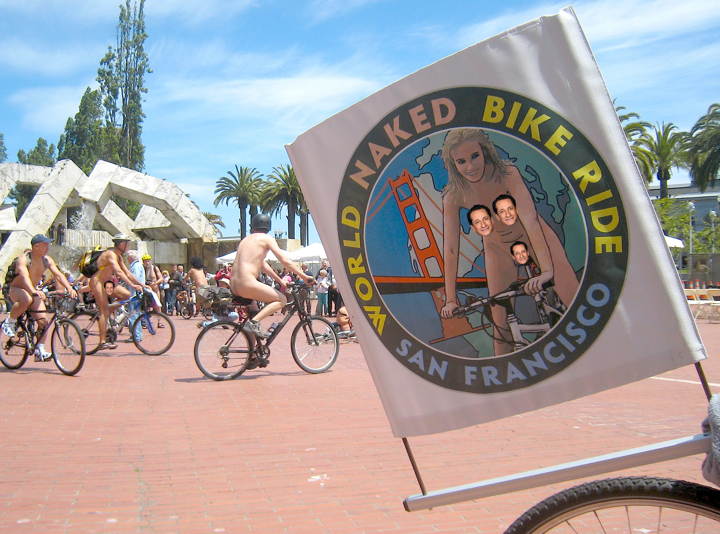 We got a link from Zombie on the exclusive coverage of the World Naked Bike Ride in San Francisco. The only links I provide are the “Safe for Work” versions. Zombie quotes the sponsoring organization which says the World Naked Bike Ride is “To celebrate cycling and the human body. The ride demonstrates the vulnerability of cyclists on the road and is a protest against oil dependency.”