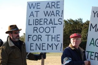 Thank you for your post and representation via the Gathering Eagles. The only hatred I sense being spewed is that of “freedomfromtyranny”. Why are those parading for “peace” always so hateful and hopeless? As I’m sure you know from your many years of service, their whole “speaking truth to power” stance is laughable. I’ve represented those seeking asylum who did speak the truth of democratic principles in the face of true tyrants and, as a result, were brutalized and saw their families killed. In my interviews with them, they would commonly say “you see, it’s not like here” before relaying one horrific tale after another. Before marching for ANSWER, “fft” should consider the amazing link between capitalism/a middle class and human rights. And, before daring to lecture one who has served, “fft” should perhaps give one shining example of his/her anti-tyranny accomplishments — other than marching in the fresh, free air of D.C. snuggled in the Bill of Rights that others have willingly gone into the “meatgrinder” to provide. What a joke. BTW, “fft”, the use of “spittle” with “spew” is incorrect. Perhaps you should pass your comments around the sit-in circle one more time before submission.