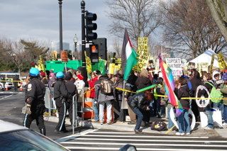 And despite the fact that ANSWER and the coalition of weasels have tried to deny that the Truthers are a part of their movement, the Truthers were there;