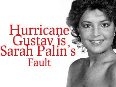 Hurricane Gustav is the fault of John McCain’s VP pick Sarah Palin.
