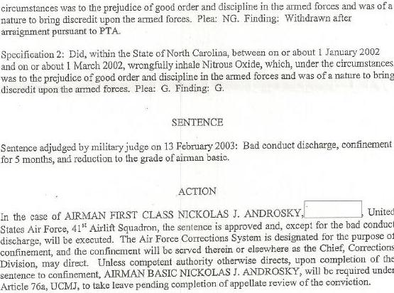 So he got the Big Chicken Dinner and 5 months in whatever the Air Force uses for the brig. And from the looks of him, I don’t think he completely kicked his “shoe cleaner” habit.