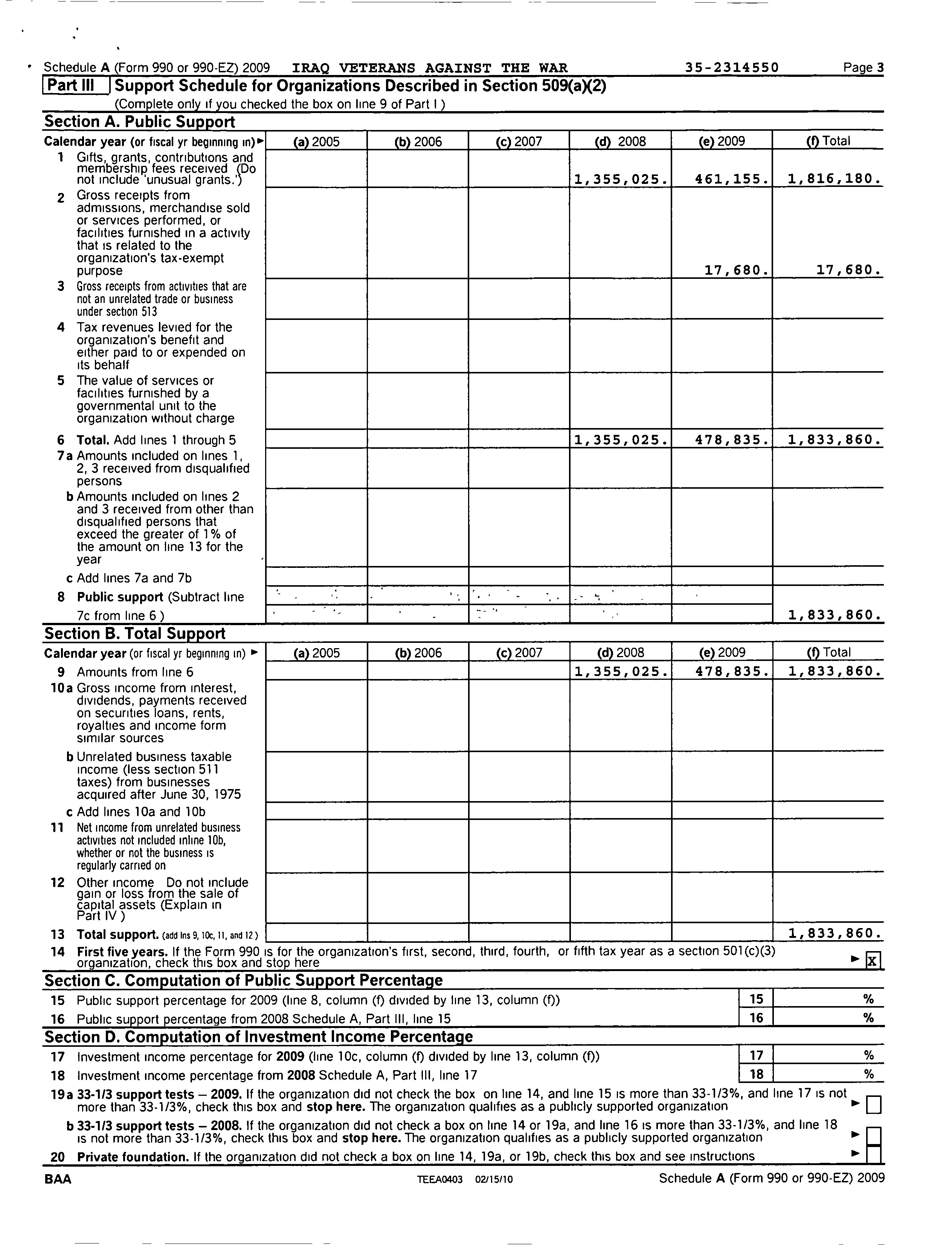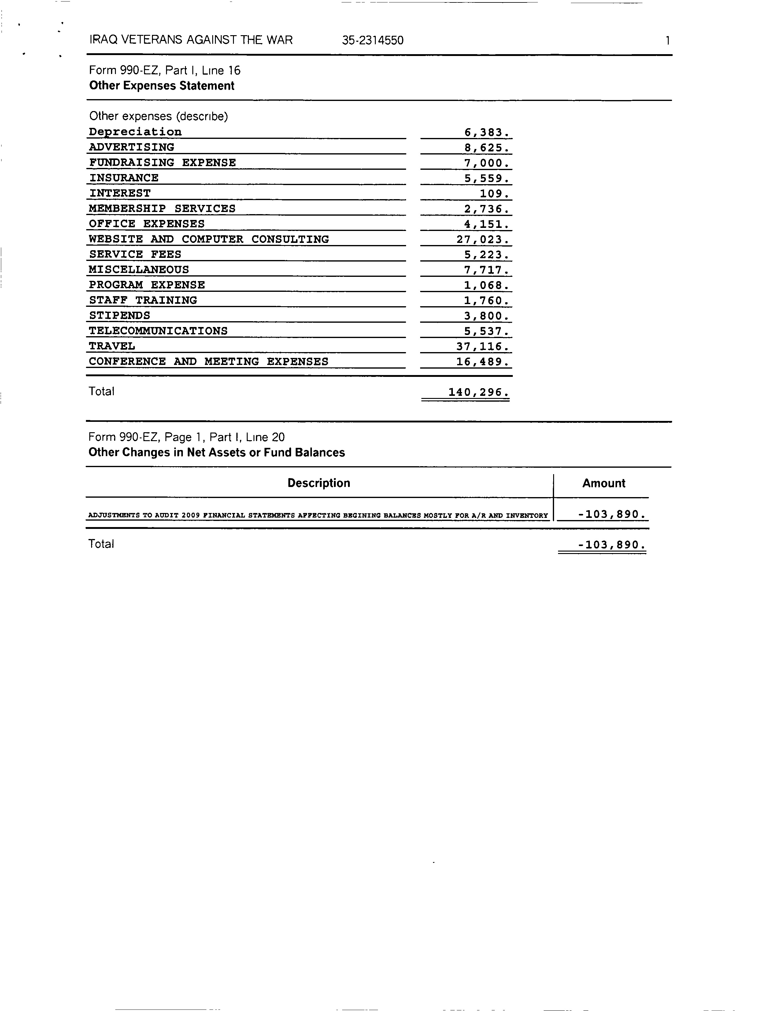 Last month we looked at how the Iraq and Afghanistan Veterans of America spent their money according to IRS filings. We felt like we were slighting some other organizations by not highlighting their expenditures. So today we’re looking at the Iraq veterans Against the War. There’s nothing really earthshaking in their filings – except how their donations have suffered between 2008 and 2009 (the last year available to the public). Click to embiggenate;