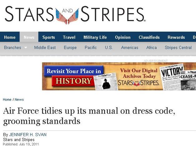 Posted in Military issuesAF tightens dress standardsby Jonn Lilyea•July 21, 2011•6 And I’m guessing it’s not this; Or this; Jonn Lilyea More by Jonn Lilyea