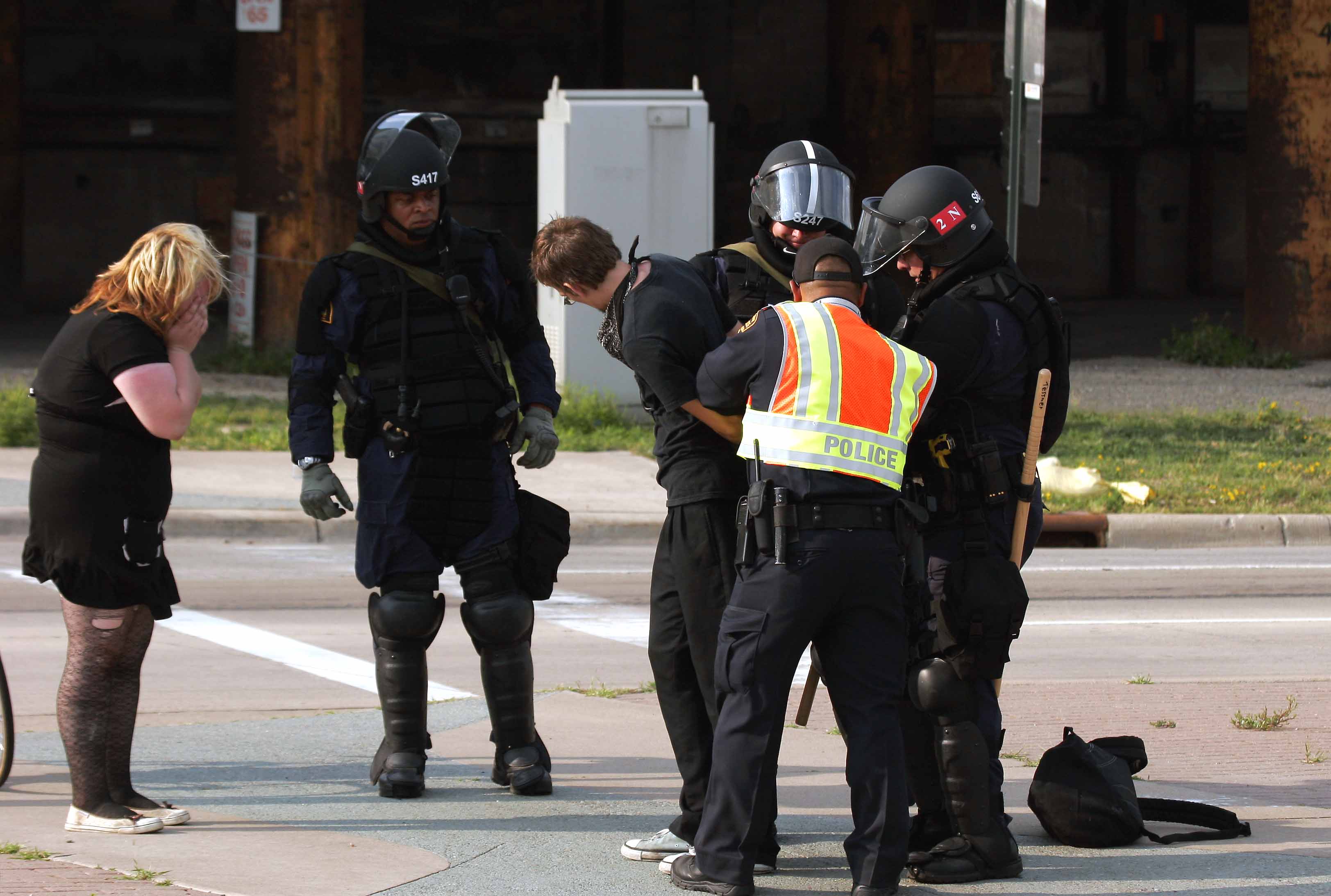 In the early evening, about 30 people were arrested at a confrontation on Shepard Road for felony assault on a peace officer and another approximately 75 people were arrested on suspicion of felony riot, said St. Paul Police Cmdr. Doug Holtz.