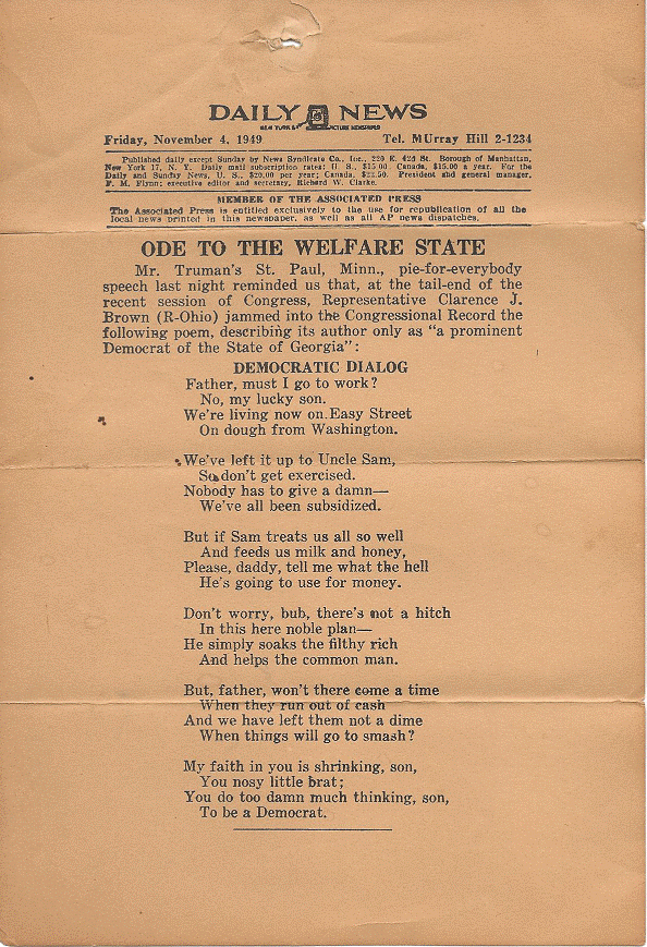 Old Trooper sent us this poem which reminds me of something that is occurring at this moment even though it was written in 1949. I won’t vouch for the accompanying story, but it’s still a good poem. I put it below the fold because it’s a fairly large file;