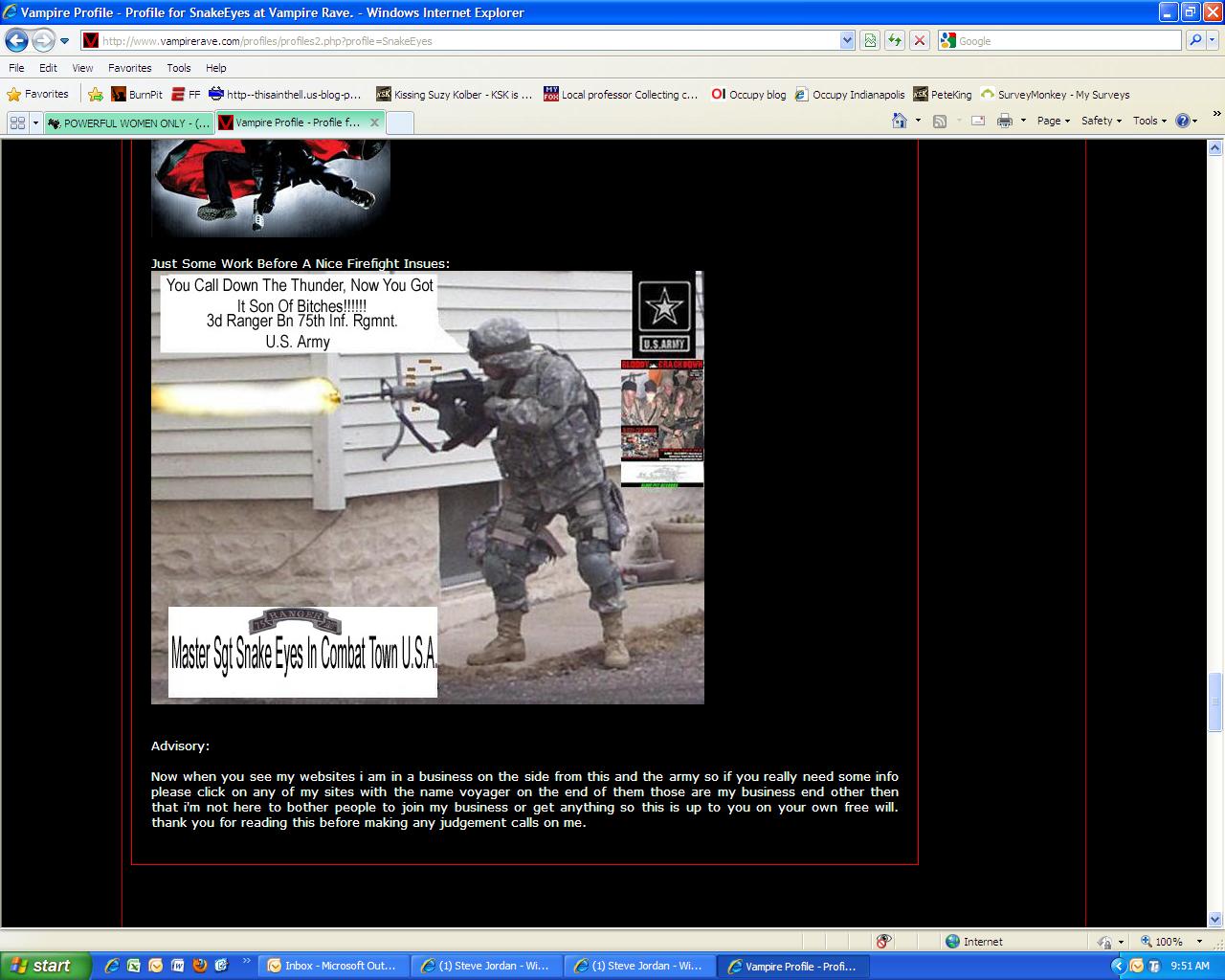 I have the displeasure to know the real Steve Jordan. He is a total fraud and tells everyone he is a vet. I met him in the S&M B&D world 5 years ago but haven’t seen him in about a year.