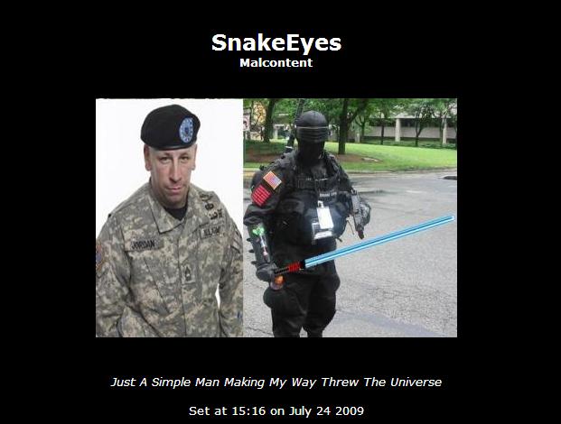 UPDATE: Loach makes some good points in the comments about Snake Eyes, suggesting that the new Facebook posts are a clone. I agree they probably are, but this screen cap from his Vampire Profile suggests that it predates his outing. So either the time stamp thing is innaccurate, or someone premeditatedly decided to take this dude out.