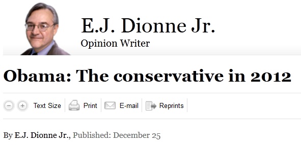 Yeah, the only way Obama becomes the conservative is if you completely redefine what conservatism is, as Dionne has done with that last paragraph.