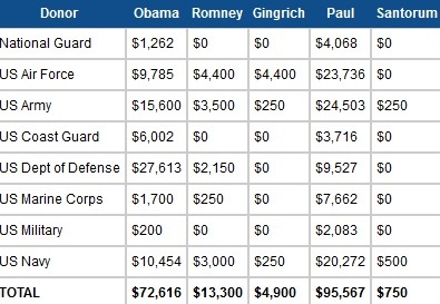 I remember when I looked at who specifically was donating to Ron Paul from the military, his largest donor was some POG in California who had never deployed, and actually had got out of the National Guard the year before to help run a Ron Paul campaign office near San Francisco. But he had identified himself as an employee of the military on his donor form.