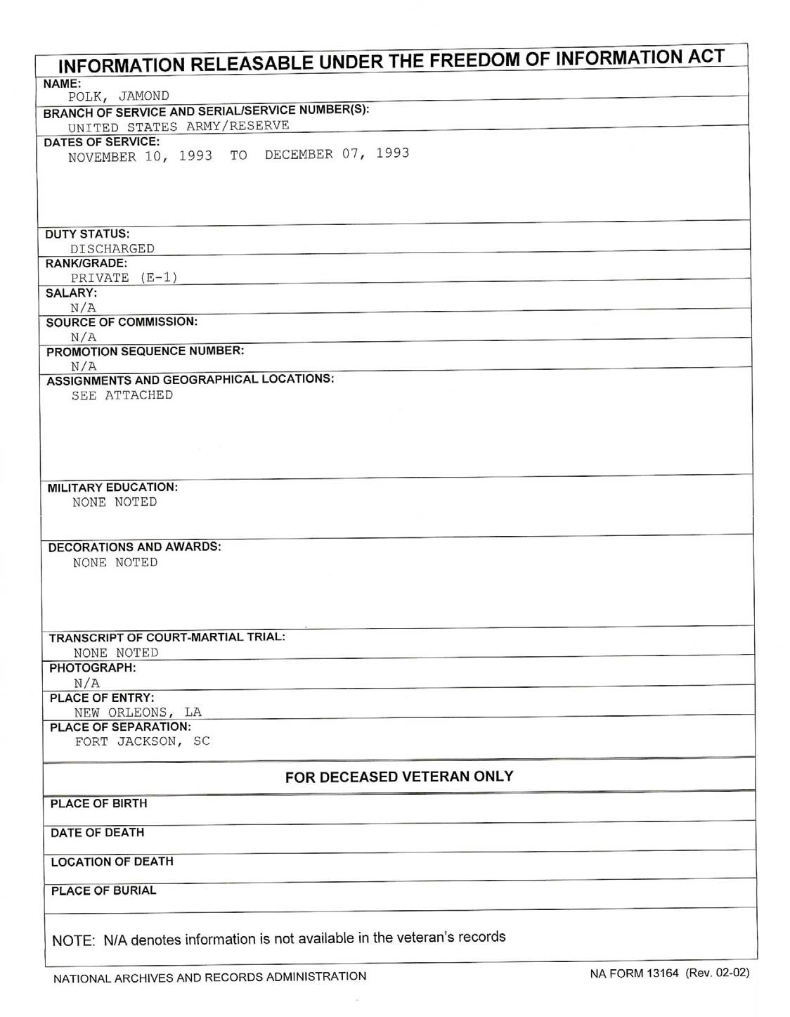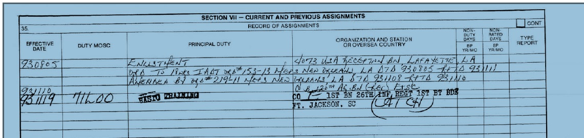 It looks like he spent more time in the MEPPS station than he did at Fort Jackson.