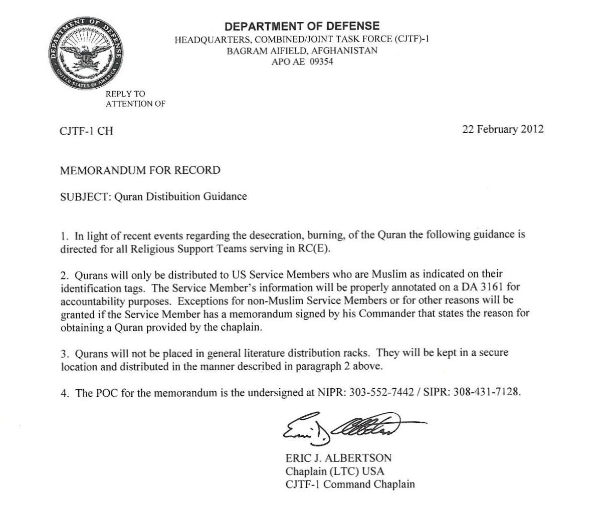 I’d prefer to see a “no free distribution” of religious texts by Chaplains in a combat zone vice a targeted one, though. Maybe a direct order system similar to the uniform replacement system that was used in Iraq and Afghanistan in 2007-2008 could be set up.