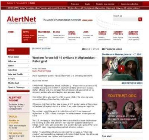 Alertnet has already removed the article, but not before I could get a screenshot. I guess the news has been slow in the days since the last protest, so the media is going to fan flames like they did with the urination video.