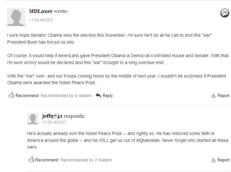 So while I was researching for my media appearance today, I happened by the Washington Post and looked through the comments and came across these delightful comments that I just had to share;