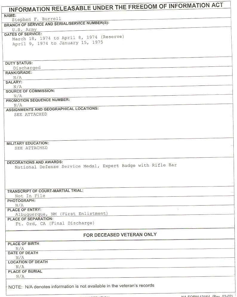 1. Is Burrell still claiming to have been an Army Ranger?