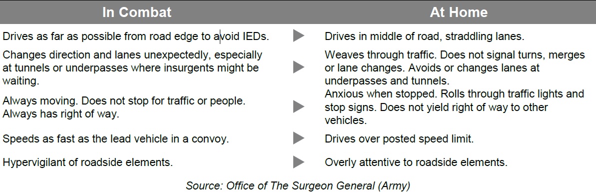 My unit covered it only a little bit during the last reintegration I went through in Dec. But all I recall was the lady telling the story how her husband kept telling her ‘clear right’ whenever she got to an intersection. I know there’s already alot of BS we have to suffer through during reintegration, but with a 20+% increase in at fault accidents, maybe this should be getting a higher priority for returning troops.