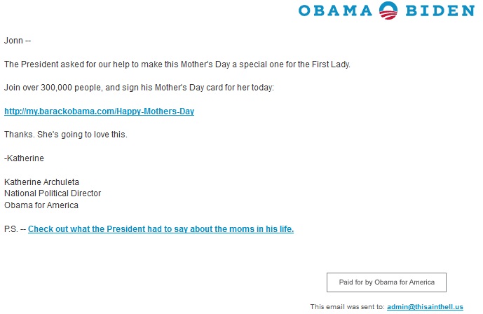 There sure is a lot of outrage about a campaign message sent to those who voluntarily chose to receive these sorts of messages.