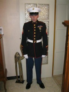 When I was stationed in Europe, I had Germans actually offer me a lot of money for my uniforms (and I’m fairly sure it’s not because they wanted to see me undressed). I’d stop at a gas station, and invariably some Deutscher would ask me how much I wanted for my regulation uniform, because they couldn’t actually get on base and get one. It’s possible Toothpick here just paid some cash to someone who was willing to sell him a USMC uniform and all the accoutrements.