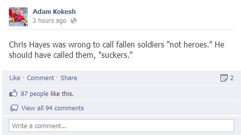 We talked about Chris Hayes and his discomfort yesterday, and how Geoff “Stolen Valor” Millard wants to help Hayes to spread his message. Well, now Adam Kokesh, another IVAW member weighs in on the issue;