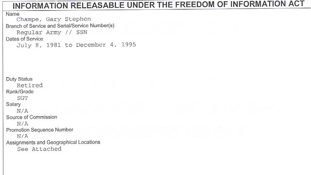 His records tell quite a different story, though. It’s pretty tough to be a prisoner of the Vietnamese when he wasn’t in the Army until 1981 (American presence in Vietnam ended in May 1975) and the obit says 25 years of service, but the math doesn’t add up;