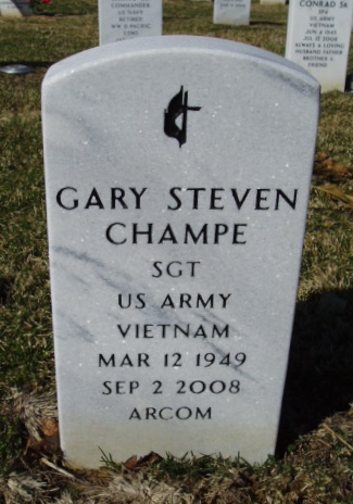 Mary at POW Network sends us information on Gary S. Champe, whose headstone above is in the Indiana Veterans Memorial Cemetery, Madison, IN. According to his obituary, he had three tours of Vietnam and a stint as a POW;