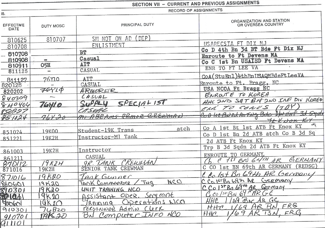 Funny how they pulled out of a line Company to Battalion and and then to a personnel clerk as 1/69 Armor (Bandits!) as they prepared and deployed to Desert Shield/Storm. That’s what I would do as a commander, always pull you best fighters out of the turrets and make the a PAC clerk.