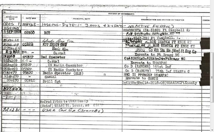 As for his record, if you’ve got the scroll from Vietnam, your a Ranger. PE