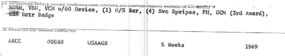 It includes a reenlistment document for his “present duty assignment” when he was in the 1st Ranger Company, 1st Student Battalion, The School Brigade and that’s supposed to prove he’s a Ranger, but it only proves that he was a support wienie at Ranger School. It also includes his DA 873 record of his Secret security clearance for some reason. I had a Secret clearance when I was an E-2, so i don’t know what that’s supposed to prove. but I’m not posting any of it because it’s shot through with his social security number and I’m not going to be blamed for inadvertently posting his PII.